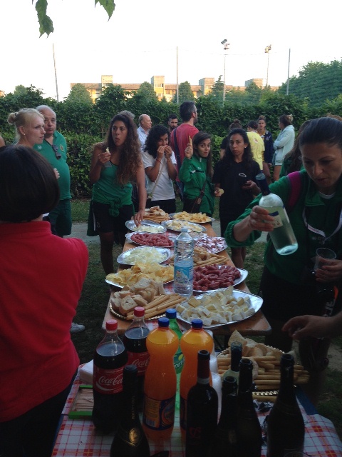 Hockey è anche (forse soprattutto) stare insieme. E terzo tempo. Qui, nella foto pervenuta dal comitato organizzatore delle finali femminili di Bra, l'aperitivo che si è svolto al termine delle premiazioni.